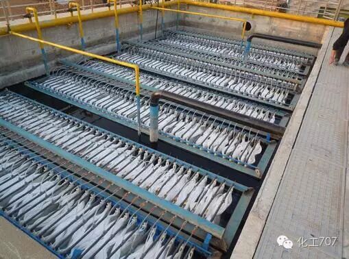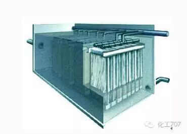 一體式膜-生物反應(yīng)器是把膜組件置于生物反應(yīng)器內(nèi)部,如圖所示。進(jìn)水進(jìn)入膜-生物反應(yīng)器,其中的大部分污染物被混合液中的活性污泥去除,再在外壓作用下由膜過濾出水。這種形式的膜-生物反應(yīng)器由于省去了混合液循環(huán)系統(tǒng),并且靠抽吸出水,能耗相對較低;占地較分置式更為緊湊,近年來在水處理領(lǐng)域受到了特別關(guān)注。但是一般膜通量相對較低,容易發(fā)生膜污染,膜污染后不容易清洗和更換。
